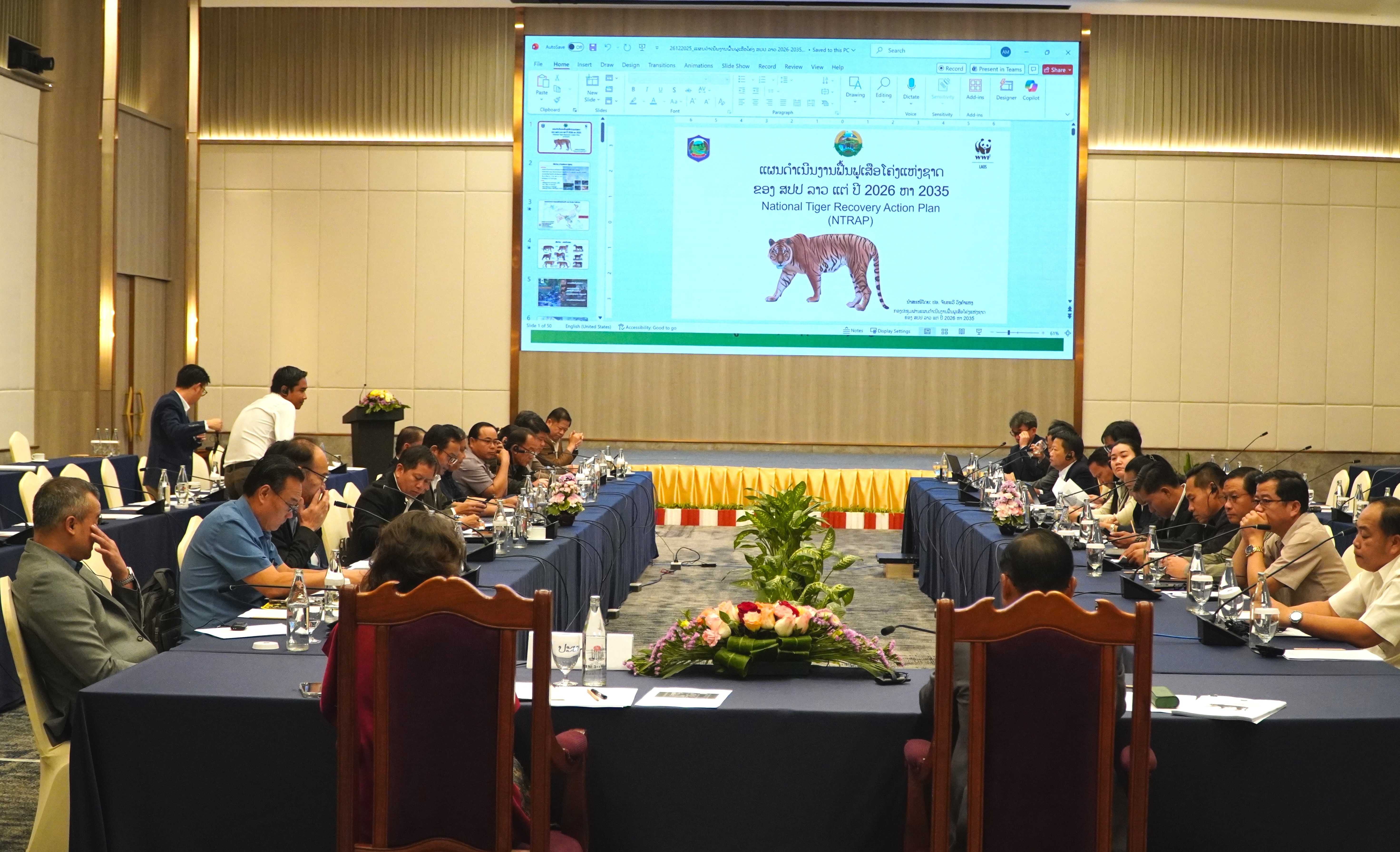 The final consultation meeting for the NTRAP, organized by the Department of Forestry under the Ministry of Agriculture and Environment, was held on 26 December 2025 in Vientiane Capital with support from WWF-Laos. The meeting was co-chaired by Assoc. Prof. Dr. Thoumthone Vongvisouk, Deputy Director General of the Department of Forestry, and Heron Holloway, Country Director of WWF-Laos, brought together provincial forestry authorities from areas with high tiger recovery potential, wildlife and law-enforcement agencies, conservation organizations, and other key partners.
